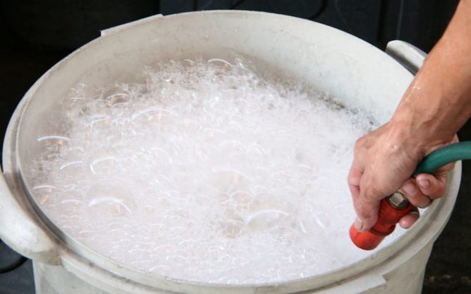Tokį mišinį paruošti labai lengva: 0,1 litro skysto muilo reikia ištirpinti dešimtyje litrų paprasto vandens. Tokį augalų mišinį būtina apdoroti iš visų pusių, atkreipiant ypatingą dėmesį į lapus, tepant juos išorėje ir viduje (amarui patinka slėptis nuo žalumynų užpakalinės dalies). Apdorojimo procedūra turi būti atliekama saulėlydžio metu, kad per naktį susidarytų plėvelė.