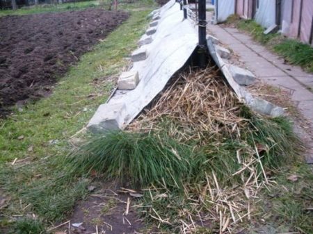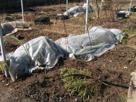 Pilna pastogė Jis gali būti naudojamas Vidurinėje juostoje, norint atrasti šilumą mėgstančias pietines veisles, tačiau patartina šiaurėje, Sibire, Tolimuosiuose Rytuose. Šakos yra tvarkingai paklotos ant medinio pagrindo, tada padengtos natūralia izoliacija ir apvyniojamos geografiniais audiniais apsaugai. Viršutinis sluoksnis yra plėvelė arba stogo medžiaga. Atidarymas atliekamas keliais etapais, su 3–4 dienų intervalu. Pašalinus paskutinį izoliacijos sluoksnį, pastatykite laikiną šiltnamį ar šiltnamį.