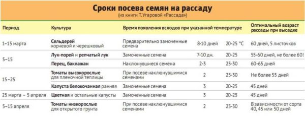 Sėjant sėklas vasario mėnesį, daigai pasirodo po 10 dienų. Po mėnesio galite planuoti augalų sodinimą į žemę. Pasėliai gali toleruoti iki 2 laipsnių Celsijaus temperatūros kritimus. Kalbant apie šaltį, sodinukai turėtų būti apsaugoti. Priešingu atveju ji mirs.