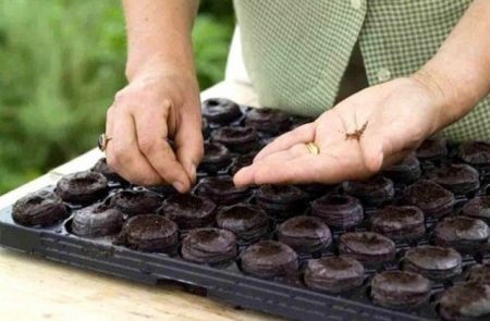 Kitas praktinis metodas: sodinukų auginimas durpių tabletėse. Jie mirkomi vandenyje, sėklos dedamos į išbrinkusias tabletes, lengvai užberiamos dirva ir laistomos. Dėl maistinės terpės sėklų išgyvenamumas tokioje aplinkoje yra labai didelis.