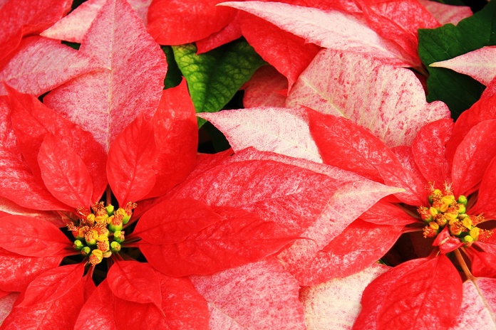 "Poinsettia" turi neaprašytą baltą mažą žiedyną, po kuriuo yra dideli raudoni lapai, suteikiantys grožį gėlės išvaizdai.