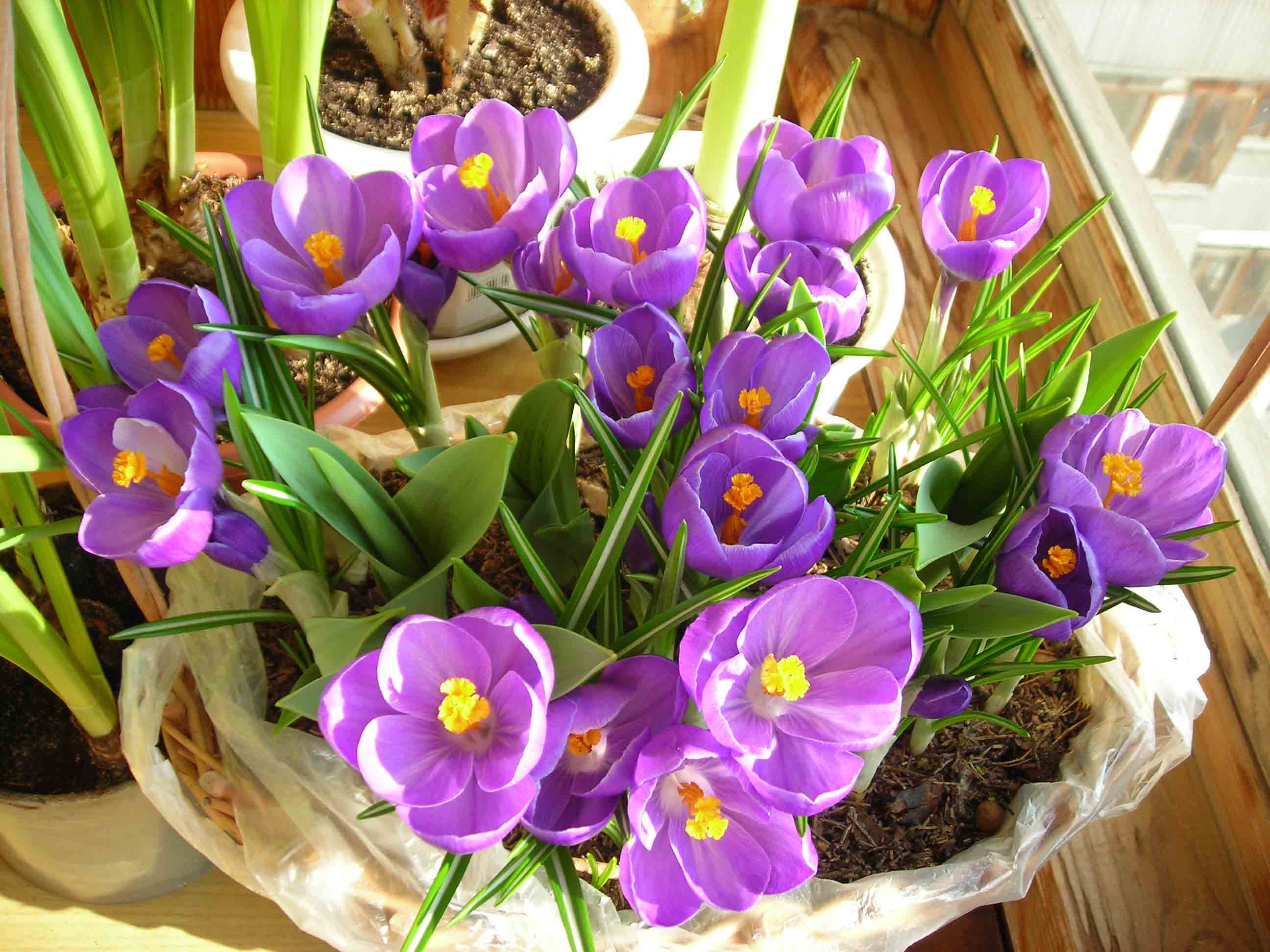 Pagrindinis tikslas yra visiškai auga augalai žiemos metu. Kiekvienas meilužis gali pasirinkti būsimo nusileidimo datą. Sėkmingas šio plano įgyvendinimas priklauso nuo to, ar pasirinksite krokusą. Todėl geriau naudoti pavasarinę ir olandišką veislę su didelėmis gėlėmis. Pradedantiesiems turėtumėte pasirinkti vienodo dydžio ir veislės svogūnėlius. Taigi, augalai žydės vienu metu su nedideliu aukščio skirtumu. Jie gražiai atrodys puode.