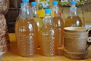 - Po 5 dienų kompozicija praleidžiama per kelis tankius marlės sluoksnius, nuvaloma nuo nuosėdų ir skystis tampa paruoštas išsiliejimui. Medovuha reikia išpilstyti į sterilizuotus butelius, tada sandariai uždaryti kamščiu ir 5 dienas laikyti sandėlyje iki 14 laipsnių temperatūros. Kiekvieną dieną reikia sumažinti slėgį buteliuose, atkimšant indą.