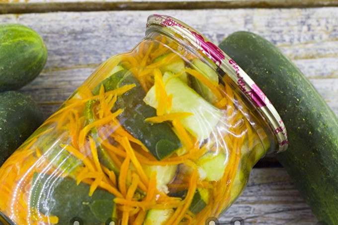 Šis receptas tinka ne tik konservuoti. Mes patariame jums virti šiek tiek daugiau salotų, nei planuojate uždaryti ir patiekti marinuotų agurkų porciją šiandien. Vos per 4 valandas patiekalas bus paruoštas valgyti.
