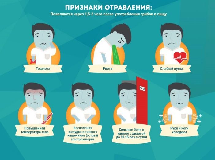 Apsinuodijimo požymiai išryškėja per 1,5–2 valandas po vartojimo. Tai gali būti pykinimas, vėmimas, šaltkrėtis, sulėtėjęs pulsas, karščiavimas, viduriavimas ir skrandžio spazmai.