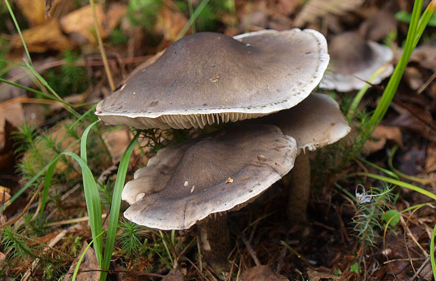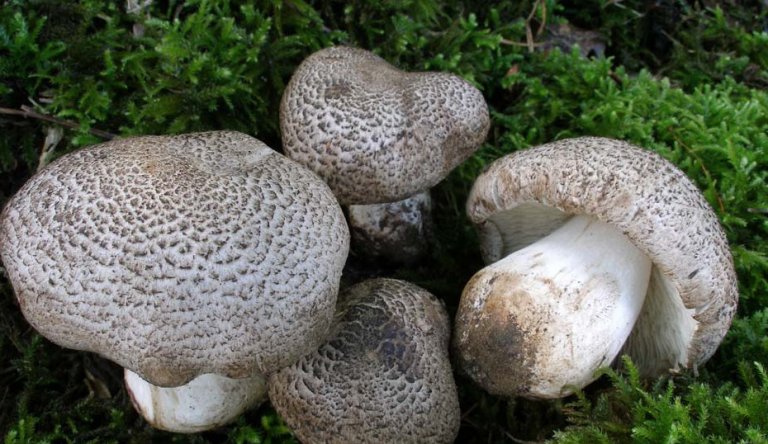- Tigras. Jis išsiskiria sidabriškai pilku skrybėlės atspalviu su pilkomis skalėmis per visą skersmenį. Centre yra juodas gumbas. Pagrindinis šio dvigubo kūno pavojus yra malonus kvapas. Nurijimas sukelia stiprų apsinuodijimą per 15 minučių.