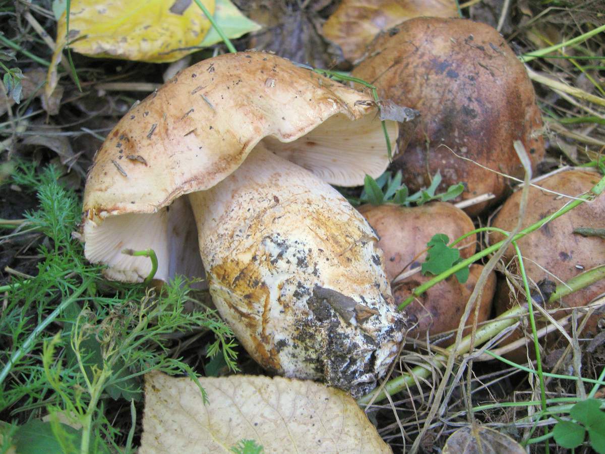- Balta. Jame yra skrybėlė su išlenktais kraštais, jauname amžiuje, tada, su amžiumi, jie ištiesina. Oda sausa. Lygi, balta spalva. Nesunku atskirti pagal kvapą, minkštimas turi švelnų muilo kvapą.