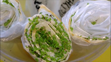 - iš vieno juostelės krašto ant šlapio popieriaus paviršiaus išdėstykite sėklas 4 centimetrų atstumu vienas nuo kito;
