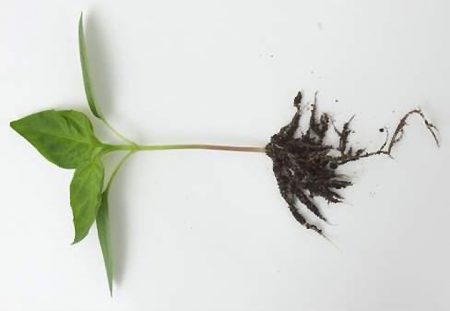 Reikės ištiesinti susuktus šaknų gumulėlius, todėl geriau augalą dėti į vandenį. Tokiu atveju reikia labai atsargiai ištiesinti, šiek tiek palietus šaknis ir suteikiant jiems norimą padėtį. Viską ištiesinęs, augalas grąžinamas į pradinę vietą, šiek tiek sutankinant dirvą ir toliau stebint jo būklę. Paprastai su sveikomis ir jau ištiesintomis šaknimis pipirai greitai įsišaknija, užauga ir užauga nauji lapai.