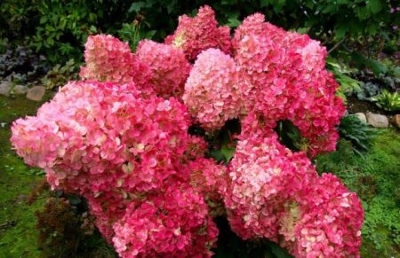 - Panika. Ši rūšis pasižymi padidėjusiu atsparumu šalčiui, augo daugiau nei keliolika metų, pasiekė didelius dydžius. Pavasarinis viršutinio sluoksnio užpildas superfosfatu (60–80 g) ir kaliu (45 g) padeda augalui formuoti pumpurus. Azotas ir mikroelementai, esantys specialių hortenzijų trąšų sudėtyje, padeda aktyviai augti.