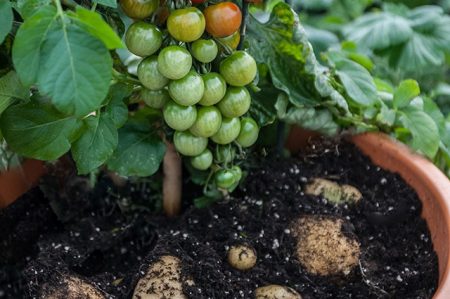 Kaip iš vieno krūmo nuskinti pomidorus ir bulves?