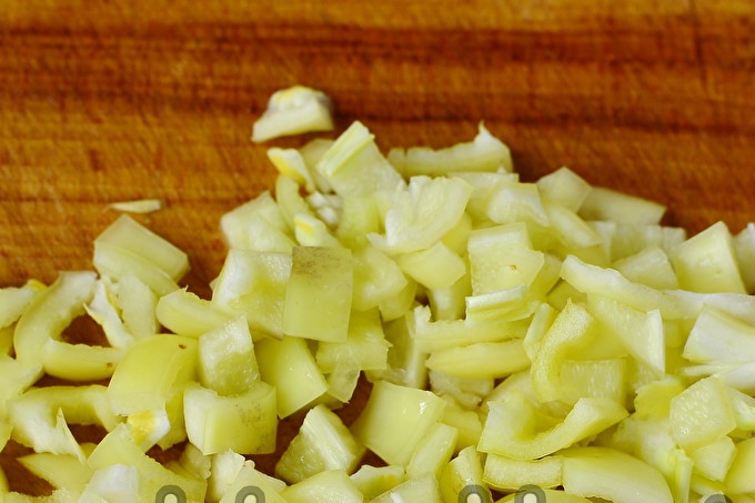 Saldžiosios paprikos nulupamos iš vidurio ir taip pat supjaustomos.