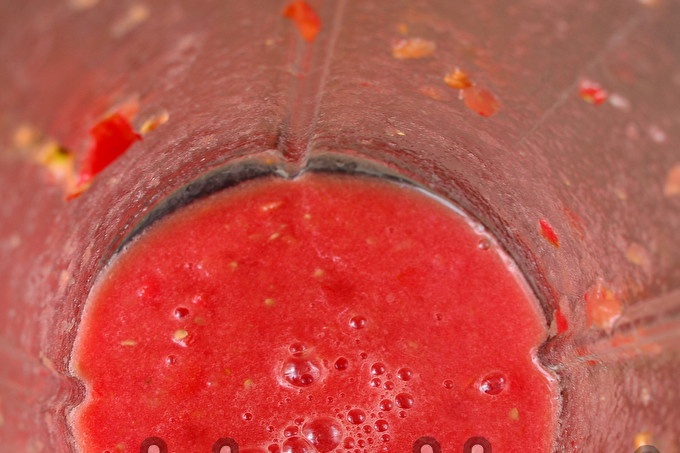 Žalumyną sumalkite peiliu, o ant trintuvės sutarkuokite tris pomidorus.