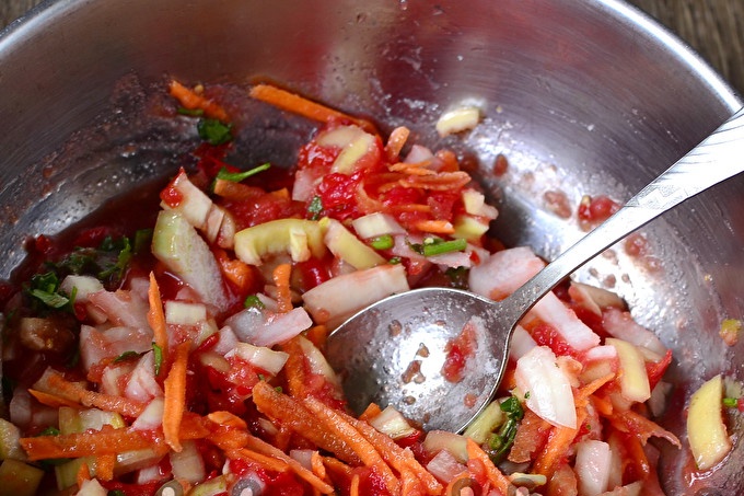 Gerai sumaišykite visas daržoves.
