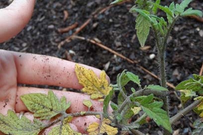 Taip pat gali atsirasti dirvožemio druskingumas iki geltonos ir balkšvos vietos ant lapų ašmenų sodinukai. Didelius druskos kiekius dirvožemio mišinyje galima aptikti dėl lengvų dryžių ant substrato paviršiaus talpykloje su jaunais augalais. Druskinimas atsiranda drėkinant per kietą ir nepersodintą vandentiekio vandenį, taip pat tada, kai padažas buvo labai gausus ir dažnas. Norint sumažinti druskingumą, reikia pašalinti viršutinį 3 cm dirvožemio plotą, o po to jį laistyti minkštu vandeniu. Norėdami išspręsti molinio mišinio problemą, pomidorus reikia persodinti į naują dirvą. Pagrindą turėtų sudaryti šie komponentai: