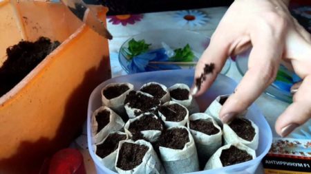 Pasodinus visas sėklas, improvizuotos tabletės užpilamos plonu dirvos sluoksniu (0,5 mm), purškiama vandeniu. Tara yra priveržiama plėvele, padėkite į šiltą vietą, laukdami sodinukų atsiradimo.