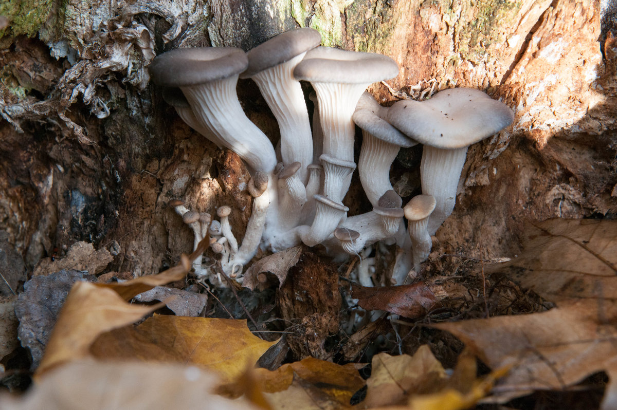 Auga austrių grybai ant kelmų.