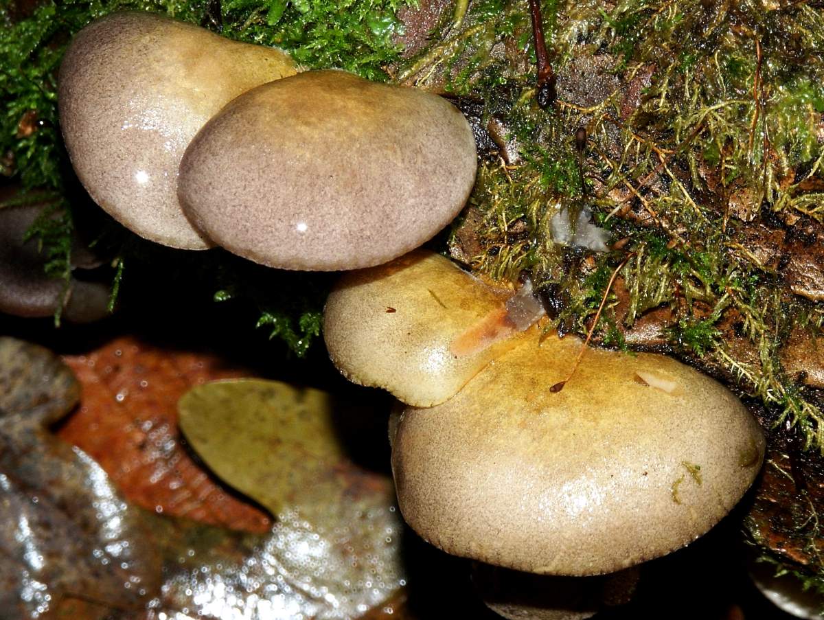 Kepurės dydis svyruoja nuo 10 iki 30 cm, spalva nuo šviesiai pilkos iki alyvuogių ir violetinės. Forma yra išgaubta, su užlenktu kraštu, su amžiumi ištiesėja. Dažnai asimetriškas, ventiliatorius, nes auga ant kelmų ir kitų vertikalių paviršių.