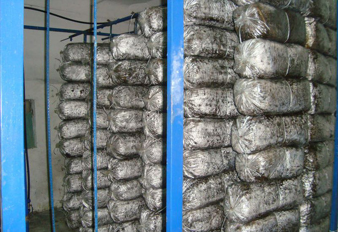 Jus gali sudominti:Kadangi maišas turi būti pūstas oru iš visų pusių, jį galima pakabinti nuo lubų arba paruošti stelažus vertikaliam maišelių montavimui. Reikalinga oro temperatūra iki + 25 ° C, drėgmė - 70–80%. Galite įdiegti ventiliatorių, bet ne nukreipkite vėjo srautą į blokus. Grybienos augimo metu maišelius reikia tamsinti, pavyzdžiui, uždaryti užuolaida ar ekranu.