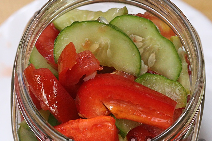 Kaip virti agurkų, pomidorų ir paprikų Donskoy salotas