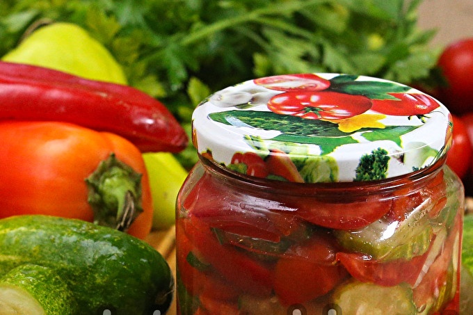 Tai ypač pasakytina apie pomidorus - jei pomidorai yra minkšti ar per sultingi, tada sterilizacijos metu griežinėliai keps ir praras savo formą. Kalbant apie agurkus, jei įmanoma, nusipirkite ne labai didelių maltų agurkų, turinčių ploną šviesiai žalią odelę.