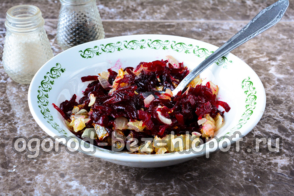 Kaip pasigaminti burokėlių salotų su keptais svogūnais