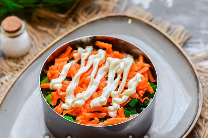 Iš anksto išvirkite morkas ir bulves, tada salotos susirinks per kelias minutes.
