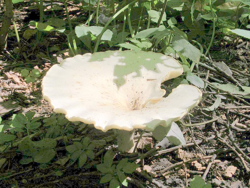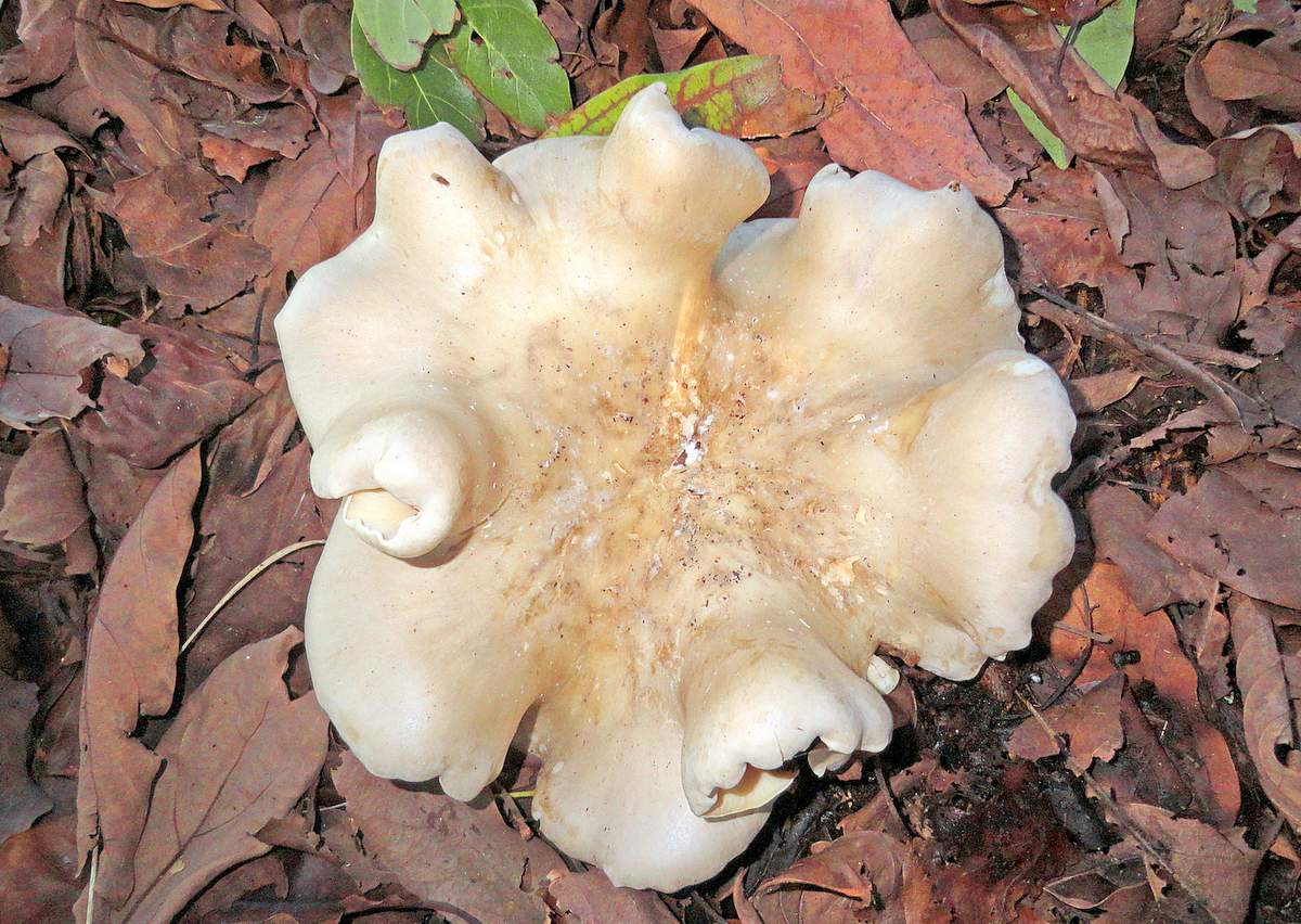 | Forma | Iš pradžių išgaubta, vėliau prislėgta ir netgi piltuvo formos. Banguotas ar netaisyklingas kraštas, šiek tiek apvyniotas į vidų | |