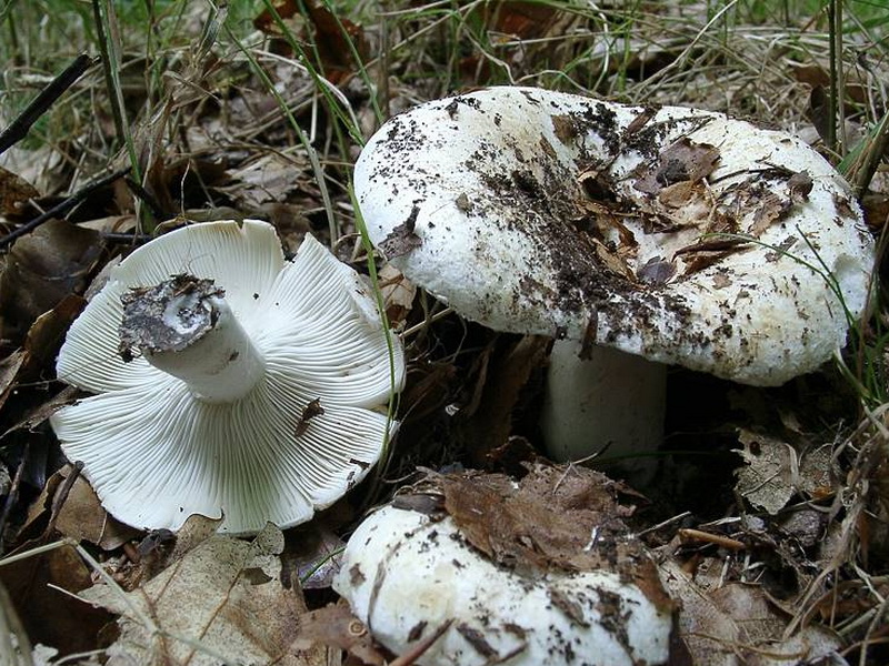 | Spalva | Balta | Balta, dažnai su netaisyklingomis rudomis dėmėmis, melsva viršuje | Tos pačios spalvos kaip skrybėlė, tačiau lengvesnė ir turi tamsesnius griovelius | |