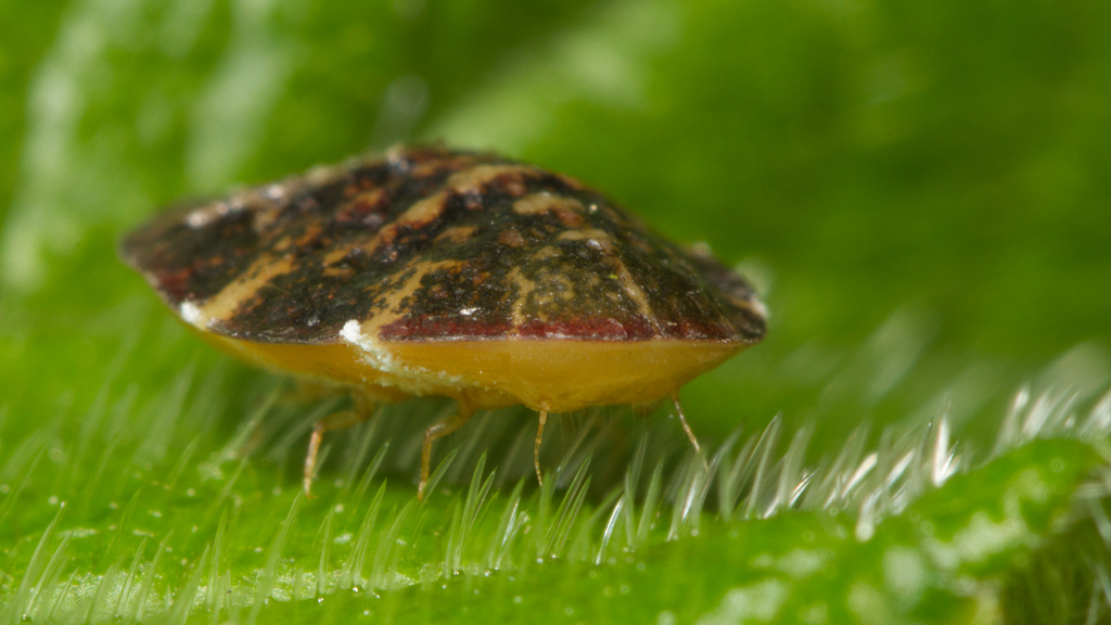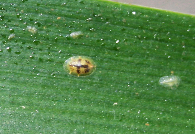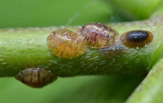 Neršiančios lervos po kelių valandų nuo kiaušinių perėjimo momento pradeda aktyviai absorbuoti augalų sultis, pasirinkdamos daugiausia apatinę lapų dalį. Suaugusiųjų buvimas gali būti aptiktas plika akimi dėl dėmių (plokštelių) buvimo ant kamienų ir lapų.