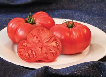 Vidutinio sezono rūšys. Prinokę pomidorai turi rausvai raudoną atspalvį. Apskritai, spalva yra nevienalytė. Visiškai subrendę jie sveria ne daugiau kaip 380 g. Jie turi plataus obuolio formą su briaunomis. Pomidorai, esantys žemiau, yra briaunoti labiau nei tie, kurie dainuojami viršuje. Pomidorai bręsta nevienalytiškai. Neprinokę pomidorai turi žalią vietą ant kotelio. Pagal savo tankį „didelis brendis“ yra vidutinis. Jame yra 6 sėklų kameros. Jei perpjaunate per pusę, sultys gausiai teka. Skonis malonus - švelnus minkštimas, turintis silpną rūgštingumą.