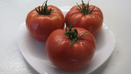 Arina: Skonis, tiesą sakant, pasirodė viršuje. Normaliam vystymuisi ji ėmėsi šių priemonių: purškė kalcio nitratu, į dirvą įnešė humuso, pelenų ir arklių mėšlo su nedideliu kiekiu vištienos lašelių. Pomidorai subrendę, didesni buvo 300 g žemiau ir 100 g aukščiau. Jie pasodinti toje vietoje, kur anksčiau augo agurkai. Mūsų šeimai tai patiko.