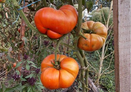 Jau keletą metų auginu tokius pomidorus. Vidutiniškai visame krūme auga apie 7–9 vaisiai. Vaisių masė yra 300–500 gramų. Nuplaukite tiesiai ant krūmo, neišpjaukite ir padėkite ant palangės paguldyti. Apskritai įvairovė mane džiugino.