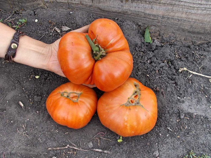 Šiandien tai yra didžiausia pomidorų įvairovė. Iš vieno krūmo galite surinkti iki 6 kg derliaus!