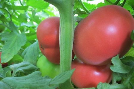 Ant vieno ryšulio susidaro 6-10 kiaušidžių. Prinokęs pomidoras sveria nuo 250 g iki 400 g, pomidoro forma apvalinama rausva spalva. Didelis cukraus kiekis vaisiams suteikia saldų skonį, turint silpną rūgštingumą. Tankios daržovės viduje yra 6 kameros, kuriose yra sėklų. Minkštimas yra mėsingas ir sultingas.