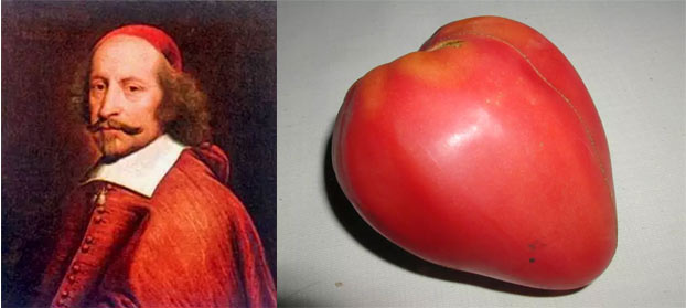 Pomidoras "Mazarin" tokį pavadinimą turi dėl priežasties. Pomidorai buvo pavadinti kardinolo Giulio Mazarini vardu, kurio sėkmės negalima pavydėti, nes būtent jis atvedė Prancūziją į pilietinį karą. Atrodytų, kad paskambinęs į laivą jis plauks. Pomidoras kardinolu buvo pavadintas ne dėl jo nuopelnų, o todėl, kad nešiojo mažą kūgio formos barzdą su aštriu galu, kurios formą pakartoja vaisiai, augantys pomidorų „Mazarin“ krūmuose. Apibūdintus pomidorus taip pat galima rasti pavadinimu Kardinolas.