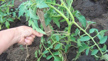 Pririšti kamieną, šakas, vaisiaus metu - gėlių šepečius. Vaisių svoris yra didelis, todėl yra pavojus, kad ūgliai sulaužys, todėl atramos taip pat įrengiamos po pomidorų sankaupas.