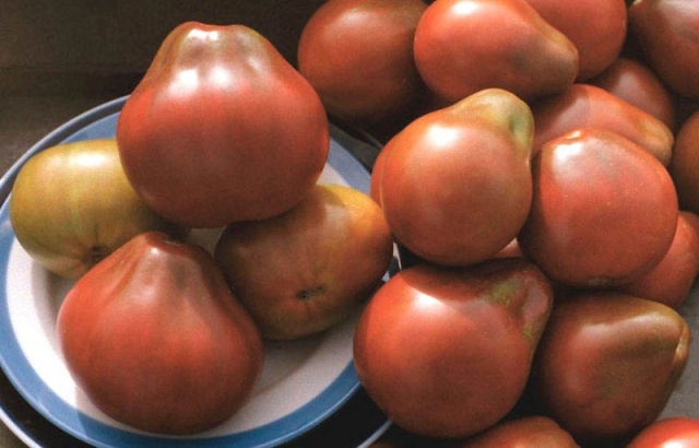 Prinokę vaisiai yra purpuriniai. Pomidorai nėra labai dideli - apie 250 g., Jie yra kriaušės formos. Skiriasi ilgas saugojimas.