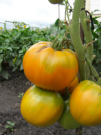 Ši veislė išsiskiria dideliais apvalios formos vaisiais, turinčiais gražų oranžinį atspalvį. Patys vaisiai savo forma ir spalva primena persimonus. Šis pomidoras priklauso vidutinio brandumo veislėms. Vaisiai paprastai yra gana dideli, gali sverti apie 600 gramų ar daugiau.