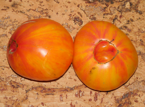 Aprašant pomidorų augalo vaisius, reikėtų išskirti šerną su geltona juostele: