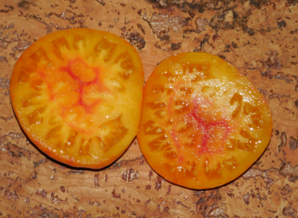 - atsižvelgiant į tai, minkštimas yra geltonas, tačiau skiriasi keliais tonais nuo odos atspalvio, pastebimos raudonos dėmės. Toks vidinis marmuriškumas būdingas tiesioginiams geltonai dryžuoto šerno „artimiesiems“;