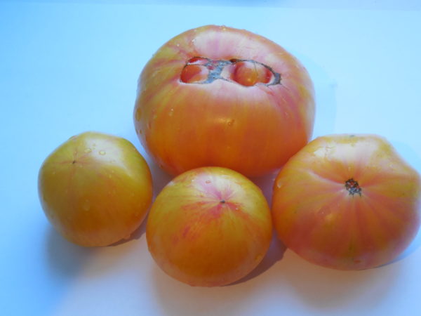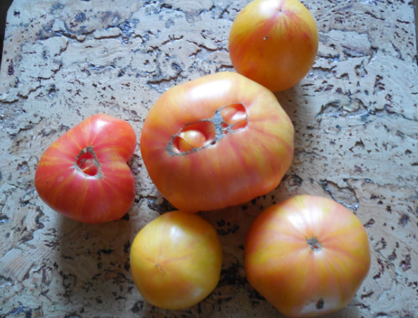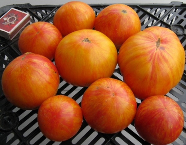 Nustebino geltonai dryžuoto šerno stabilumas. Man terminas „retas“ pjūvis rodo, kad veislei reikia ypatingos priežiūros. Bet šis pomidoras pakeitė mano nuomonę apie egzotiškas termofilines daržoves.