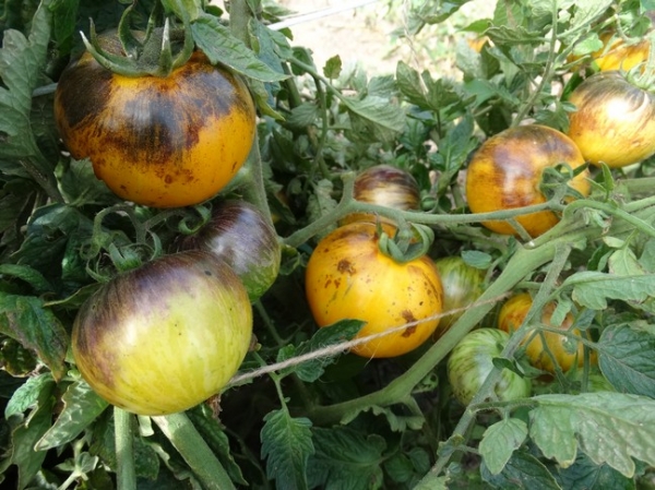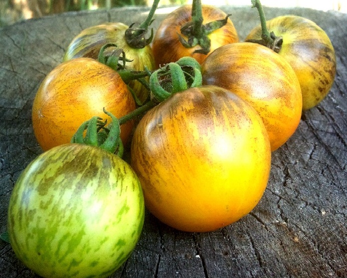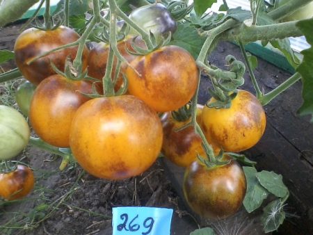 Mūsų rajone auksinis tigras auginamas labai retai. Iš esmės ši veislė sodininkų dar nėra žinoma. Aš tai sužinojau ir labai tuo džiaugiuosi. Ši veislė yra vėlai prinokę, todėl yra galimybė iki vėlyvo rudens pagardinti puikiais pomidorais. Vaisiai yra saldūs, geltoni, tačiau antocianinų išvaizda prasideda nuo kotelio. Mes visada renkame puikų derlių, tačiau yra veislių, iš kurių galite pasiimti daugiau vaisių. Tačiau neįmanoma atsiriboti nuo šių pomidorų - jie yra labai gražūs, tiesa, panašūs į tigro spalvą.