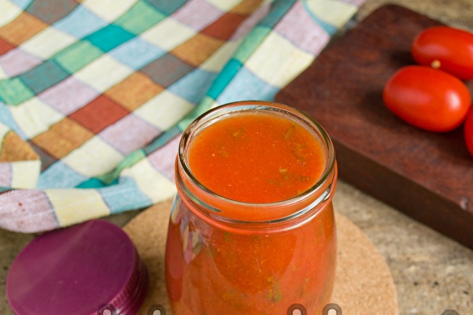 Pagal mūsų receptą su žingsnis po žingsnio nuotraukomis pomidorų padažas su bazilikais žiemai yra skanus ir kvapnus pomidorų prieskonis. Jame galite kepti „Margaritos“ picą, virti spagečius, dėti į pomidorų sriubą arba tiesiog paskleisti ant traškių skrudintų skrebučių. Vietoj šviežių žolelių galite vartoti džiovintus bazilikus. Recepte nurodytam pomidorų kiekiui reikia vieno šaukšto džiovintos žolės.