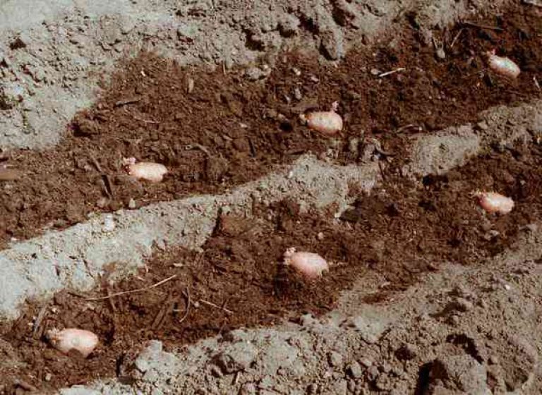 Kadangi bulvių šaknys gali augti tik viršutiniame dirvožemio sluoksnyje, pavasarį trąšos turi būti dedamos tiesiai į duobę su krūmais. Šiuo atveju svarbu stebėti vaistų dozavimą.