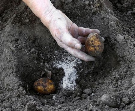 Sodininkai žino, kad viršutiniuose dirvožemio sluoksniuose vystosi bulvių krūmų šaknų sistema. Todėl visos trąšos, kurios dedamos tiesiai į šulinius, labai greitai patenka į krūmą.
