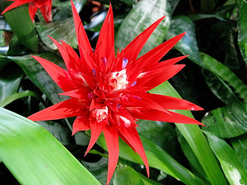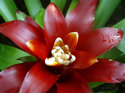 - nendrinė guzmanija - žiedynas formuojamas žydinčiais rožinės ar ryškiai raudonos spalvos lapais.