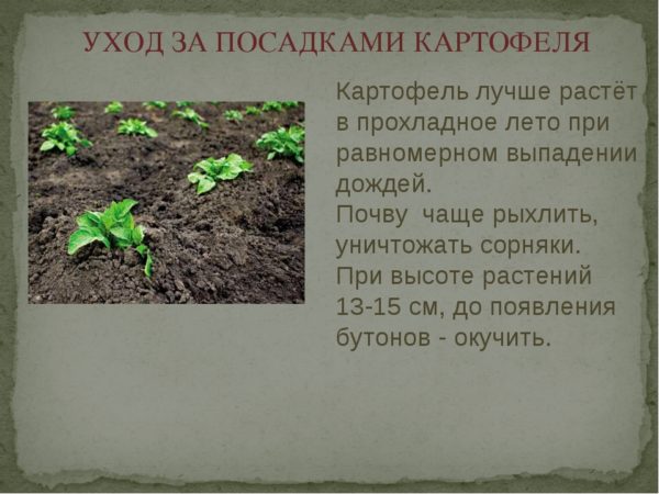 Rūpinimasis bulvėmis po daigumo yra labai svarbus, nes tai priklauso nuo to, kaip augalas išsivystys ir duos vaisių. Jei parengiamosios priemonės bus vykdomos neteisingai, bulvės vystymosi metu neišdygs ir neužšals.