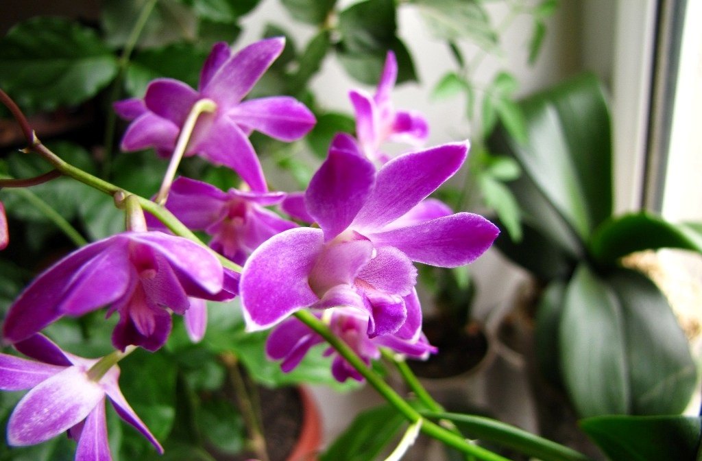- Dendrobium Phalaenopsis. Pakankamai didelė orchidėja ilgais tiesiais stiebais. Lapai ir žiedai yra stiebų viršuje. Bolševikų gėlės, iki 9 cm dydžio, kiekviename žiedyne yra iki 40 vienetų. Gėlių dažymas nuo pieno iki purpurinės, raudonos ir violetinės spalvos visais atspalviais. Orchidėja žydi 2 mėnesius (nuo lapkričio iki sausio). Skintos gėlės ilgą laiką stovi vazoje šviežios, todėl floristai jas naudoja vestuvėms ir kitiems renginiams papuošti.