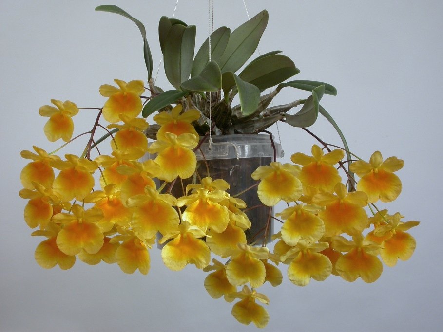 - Dendrobiumas Lindley. Jos stiebai žemi, ne aukštesni kaip 8 cm, spalva aukso geltona, patrauklaus kvapo.